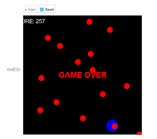 赤い●が落ちてきて、青い●をマウスで動かして避けるというゲームです。