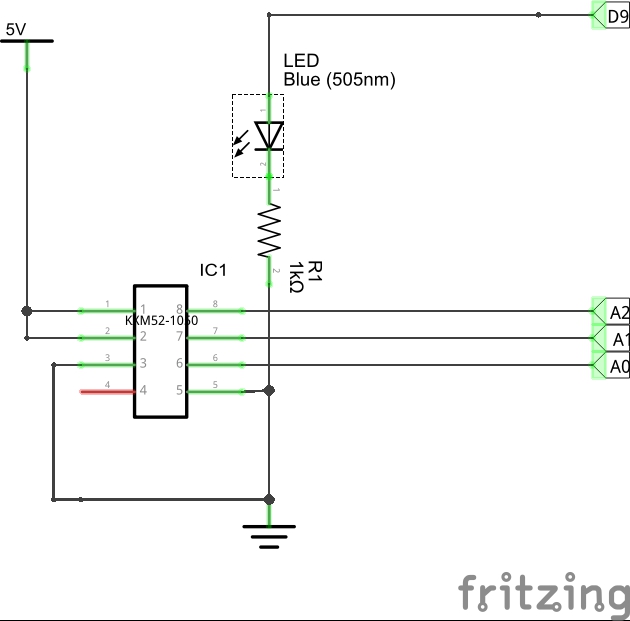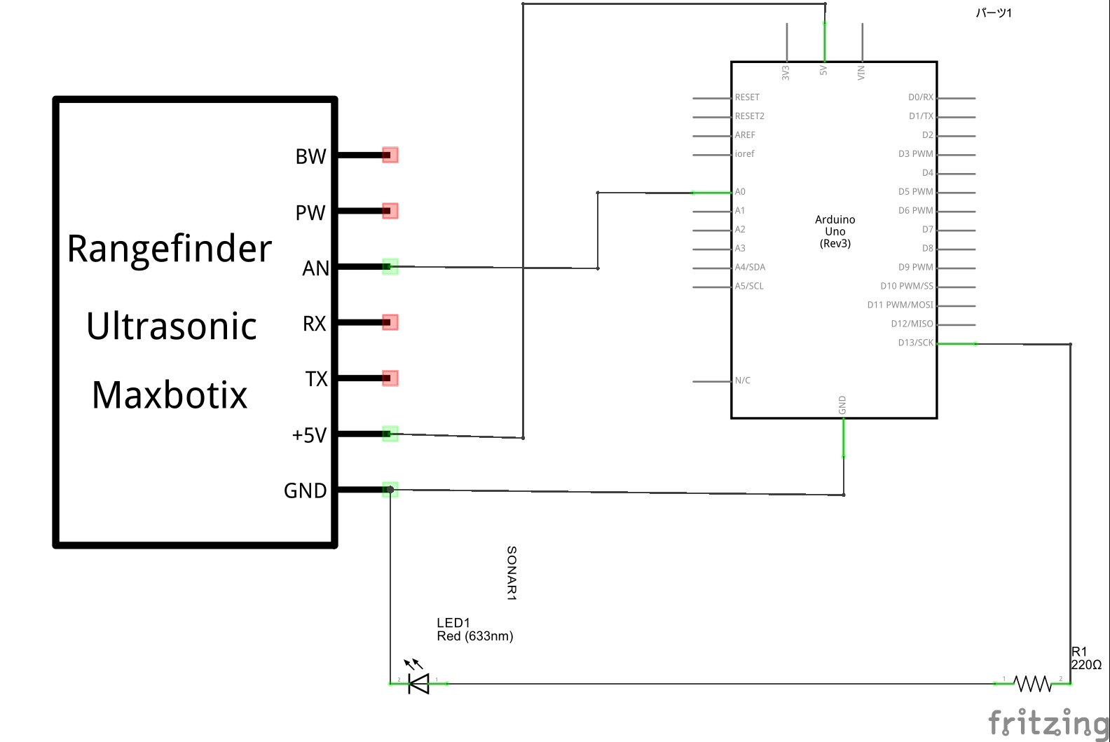 スライダの動きに応じてLED列が順番につきます。なかなかきれいです。
