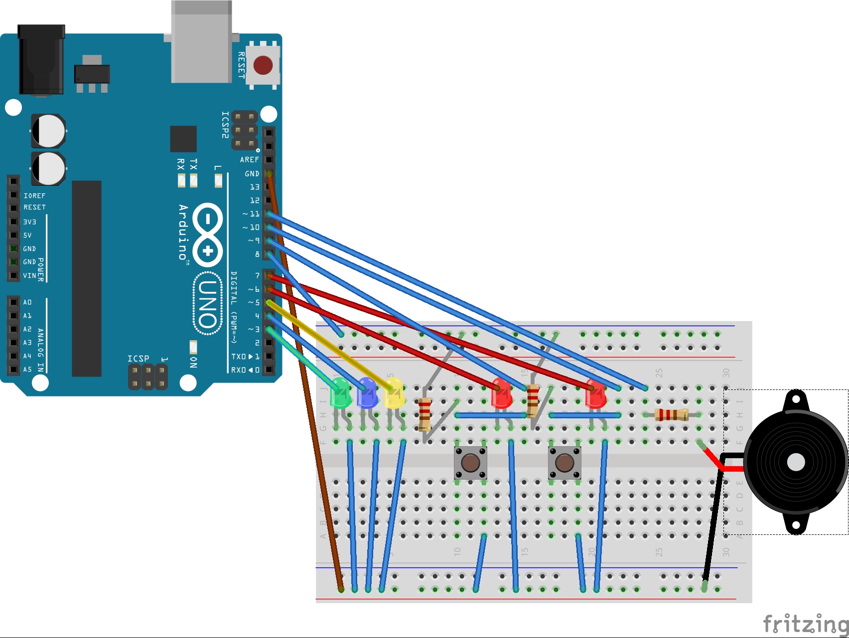 LEDがすべて光っている状態で上矢印をクリックすると大きい音が鳴る